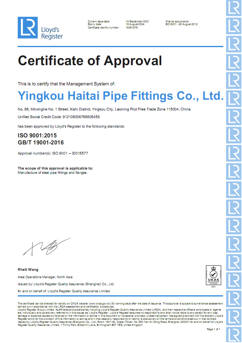 營(yíng)口海泰金屬管業(yè)有限公司成立于2001年,是專業(yè)生產(chǎn)管道配件的制造經(jīng)營(yíng)企業(yè)。公司占地面積兩萬五千平方米,坐落于中國(guó)遼寧省港口城市營(yíng)口。營(yíng)口一市兩港(營(yíng)口港、鲅魚圈港),東臨大連港四季通航,陸路運(yùn)輸四通八達(dá)交通便利。
